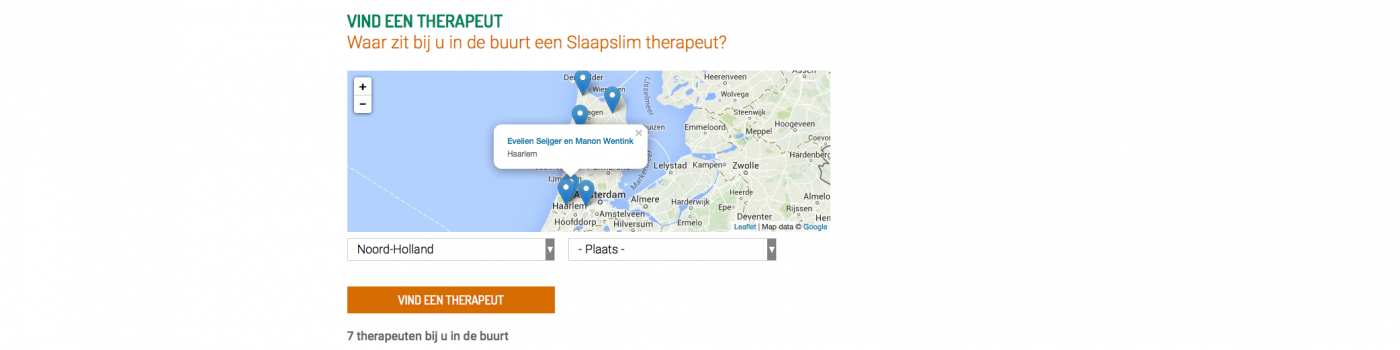 Slaapslim is een behandeling gericht op het verbeteren van je slaap. Deze behandeling is op dit moment bij 10 therapeuten te volgen. De behandeling is ontwikkeld door Evelien Seijger en Manon Wentink uit Haarlem en voor hen maakte Bram Linssen deze website samen met Sandra de Bruin van Oya Creatief. Sandra verzorgde het grafisch ontwerp en Bram realiseerde de bouw.