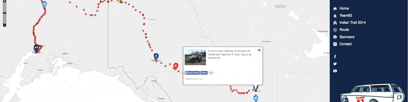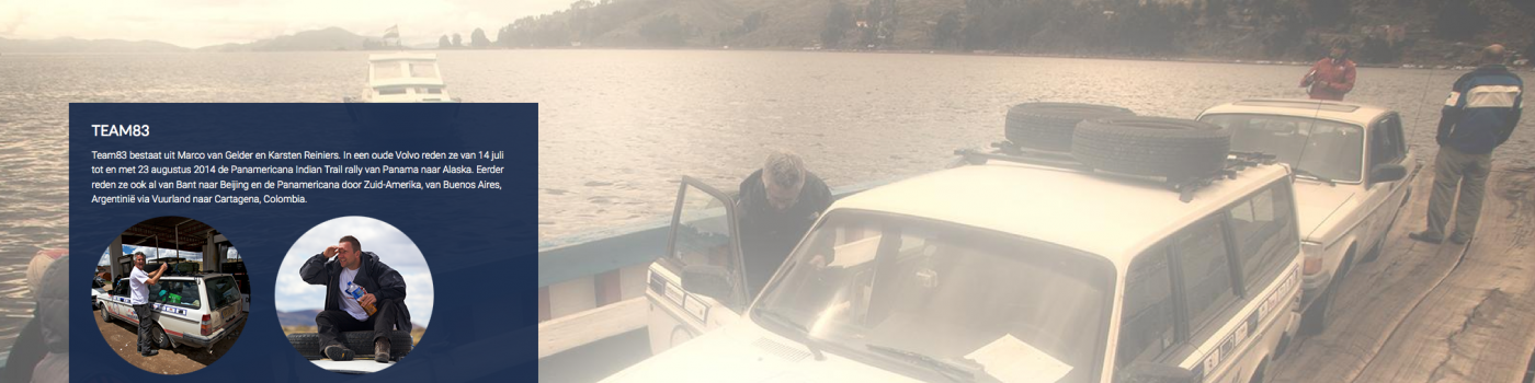 Team83 bestaat uit Marco van Gelder en Karsten Reiniers. In een oude Volvo reden ze van 14 juli tot en met 23 augustus 2014 de Panamericana Indian Trail rally van Panama naar Alaska. Eerder reden ze ook al van Bant naar Beijing en de Panamericana door Zuid-Amerika, van Buenos Aires, Argentiniƫ via Vuurland naar Cartagena, Colombia. Bram Linssen verzorgde de website met live GPS feed, Twitter berichten en facebook berichten op de kaart.
