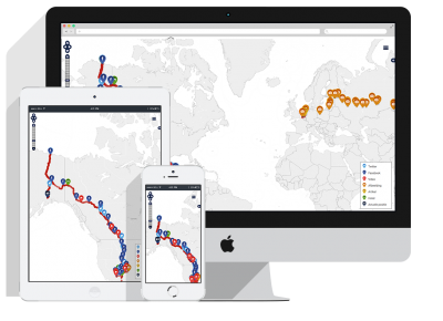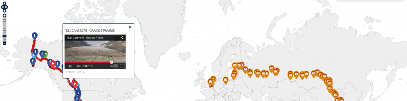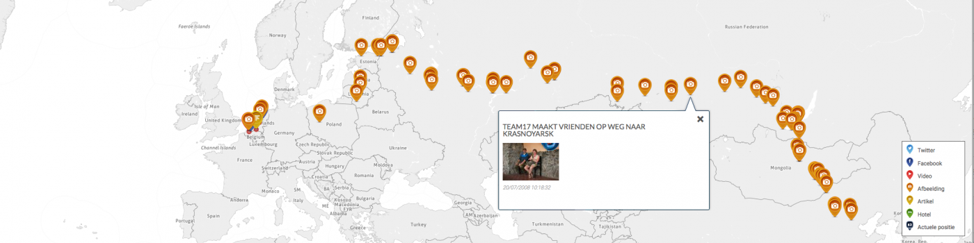 Twitter en facebook berichten worden gelijk op de kaart getoond wanneer deze vanaf de telefoon verzonden worden. Inclusief bijbehorende films en afbeeldingen. Op deze wijze kunnen de thuisblijvers Marco en karsten volgen zonder dat zij eerst iets op een computer moeten uploaden.